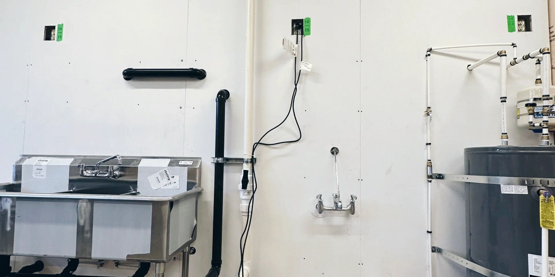 Ice Cream Store Plumbing and Fixtures including mop sink, sump pump, hot water tank and sinks